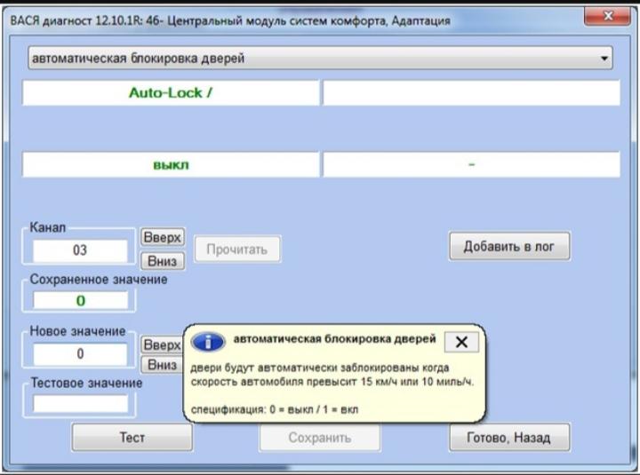 Если нет в подсказках, тогда скорей всего не получиться. Инфа из ross-tech по кодированию VW Transporter (7H/7J) Comfort System Coding * +00001 = Selective Locking inactive * +00002 = 4-Doors (only with Sliding Door Rear Left AND Right) * +00004 = Sliding Door Rear Left * +00008 = Sliding Door Rear Right * +00016 = Power Windows not installed but with Central Locking * +00064 = Power Windows installed and with Central Locking * +01024 = Power Windows installed but without Central Locking