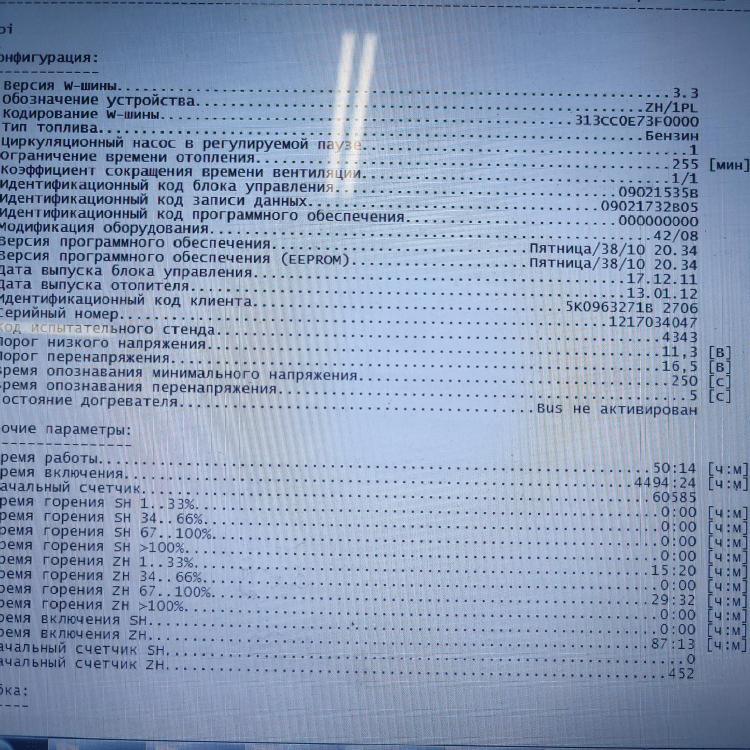 Всем привет. Кто может помочь разблокировать W-Bus для запуска котла? Котел штатный догреватель VW Sharan 2 2012 ZH/1PL с CAN 5K0963271B 2706. Sharan 1380 no CS.prn Sharan.TXT