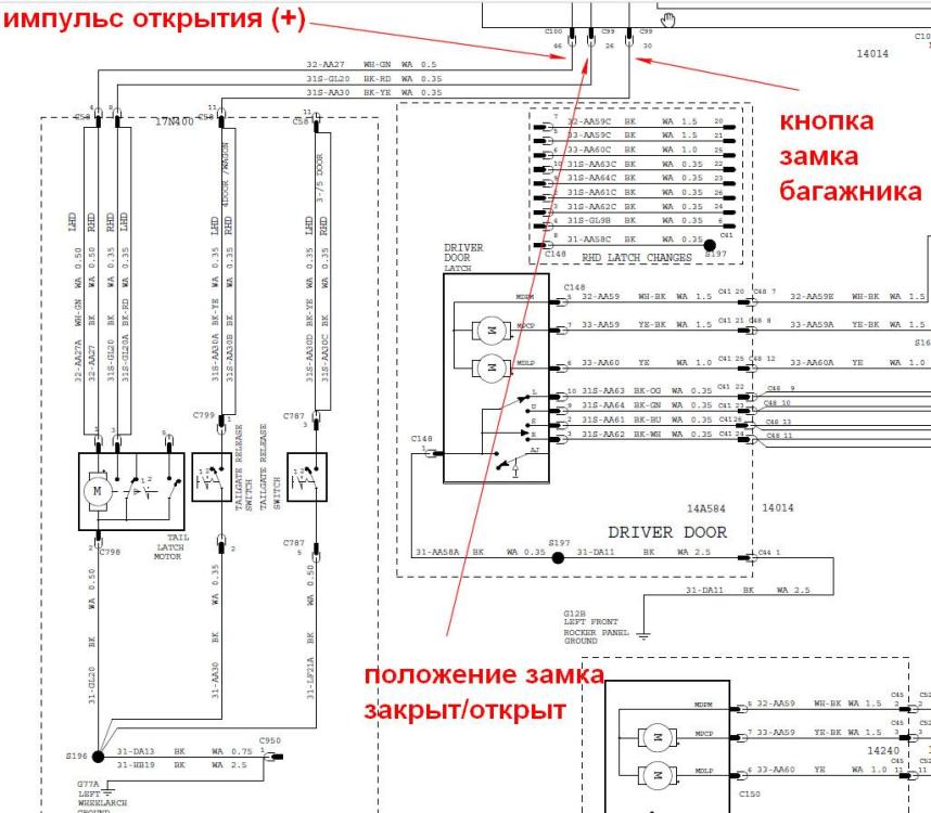 Здравствуйте! Ford Focus 2 2009г. хетчбек. Не могу решить проблему открытия замка багажника. Глубокая предыстория неизвестна, скажу лишь, что по многим признакам машина была в аварии, а недавняя история заключается в том. что жгут проводов, идущий к двери багажника, до меня меняли достаточно грубо, провода одинакового цвета, меняли почему-то не только то, что в гофре, а вплоть до замка, было очень сильно напутано, куда зря, долго разбирался, вроде всё восстановил согласно схеме. GEM мотор замка видит, при отключении разъёма выставляет код по обрыву, но при этом с кнопки не управляется. Дистанционный брелок есть, но там две кнопки, открыть/закрыть, кнопки багажника там нет. Брелок явно нештатный, лезвие ключа там другое, менялся уже. Двери открываются, закрываются, всё нормально. Подозрение на то, что раз проводка была напутана, что-то там в GEM могло выгореть. Заказываем другой, аналогичный GEM, ставлю - тот- же результат. При подаче "-" на контакт 30 разъёма С99 GEM нет никакой реакции, нет импульса отпирания на контакте 46 разъёма С100 GEM. Ошибок нет ни в каких блоках. Скрины ELMconfig по конфигурации есть, если есть смысл, положу, ничего критичного там не заметил.