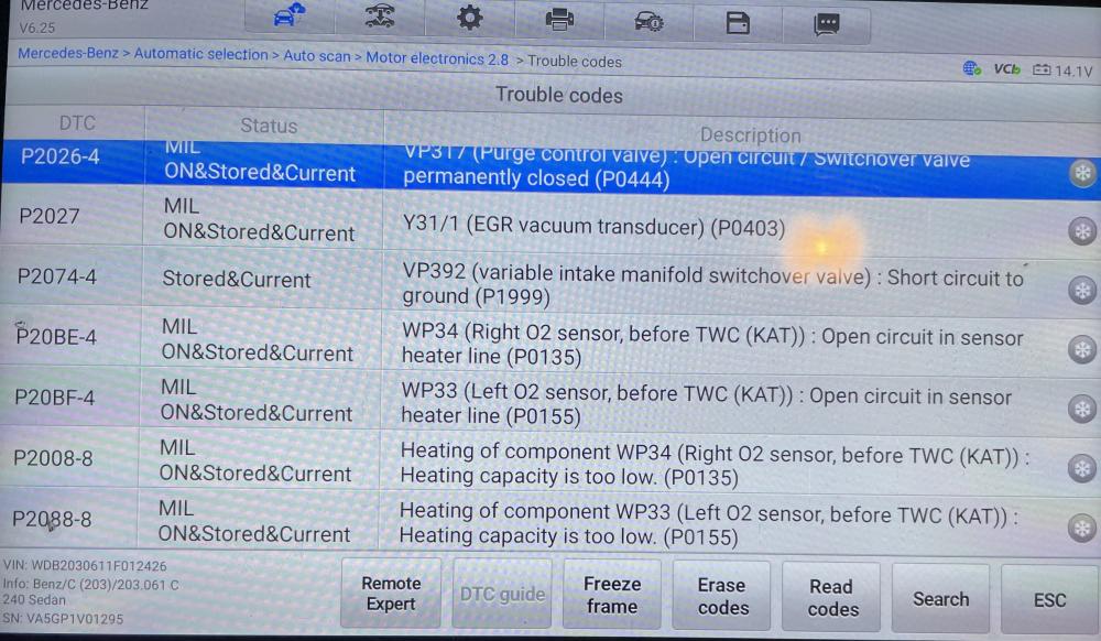 Добрый день, господа. есть такой авто, 2001 года: WDB2030611F012426 Принадлежит родственнику (те самые, от которых не отмажешься). проблема: стало холодно и через раз горит "чек". При чем может утром гореть, вечером потухнуть, потом сразу загоретчя через час. В общем 3 раза на день ситуация меняется. зачитал ошибки, стер, завел - снова те же ошибки (приложу фото). А утром следующего дня чек потух (не подтвердились dtc, наверно), а вечером снова загорелся и снова читаю и снова все те же ошибки, что вчера смотрел (новых не добавилось). не шарю я в мерсах, но и отправить владельца и не вариант и не куда. Вопрос не про решить проблему, а про взаимосвязь ошибок - может питание или масса там общие? Или на одном разъеме блока управления висят? Или болячка есть у этих авто с таким набором ошибок? авто в возрасте - полезу "копать" наугад - там точно еще много че сломается от того, что "тронул". вот и прошу помощи "спецов" опытных.
