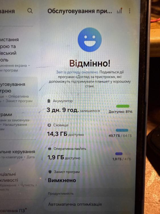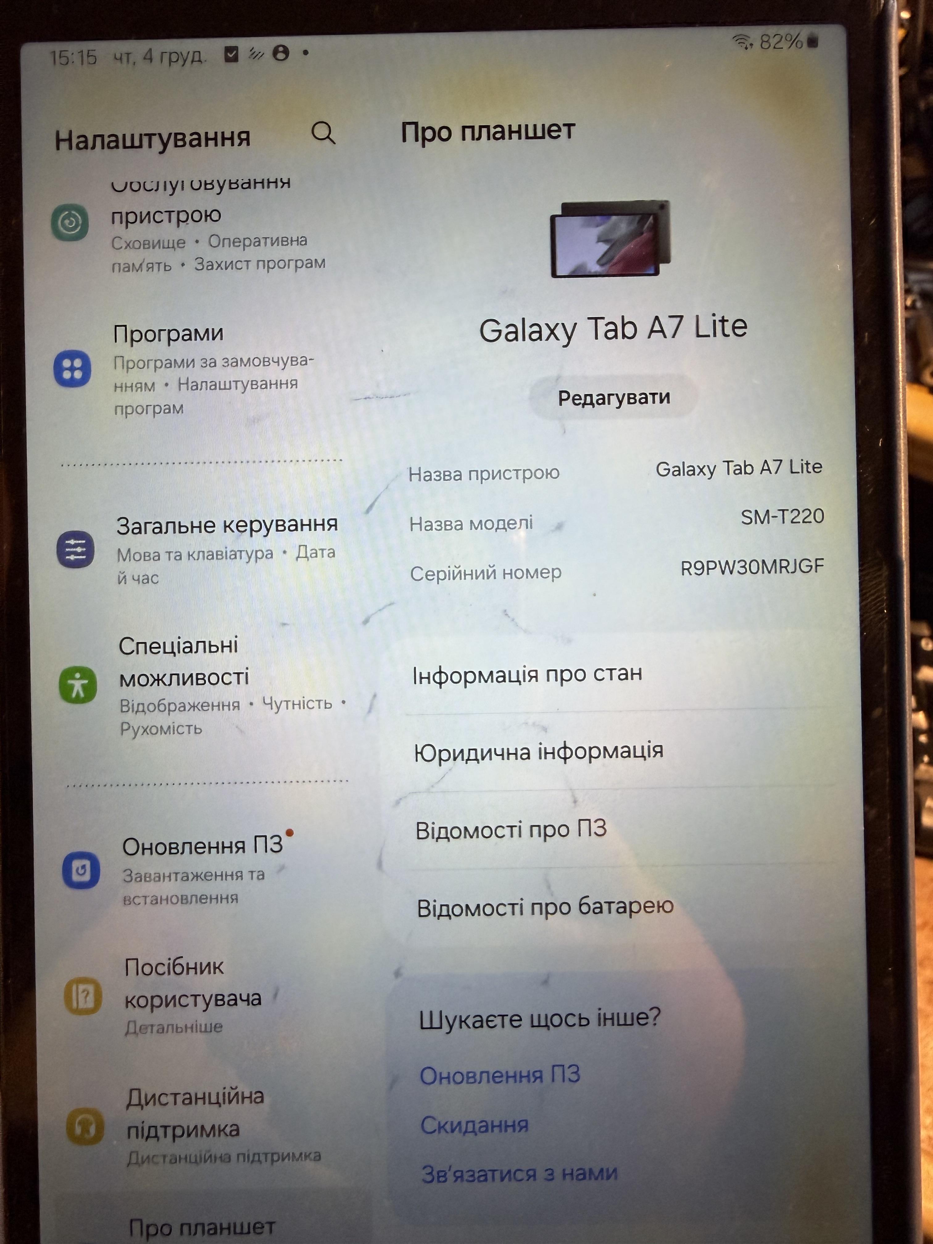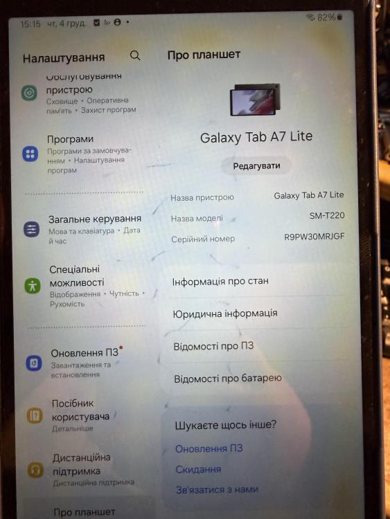 Планшет Galaxy Tab A7 lite Екран 8.7' Пам'ять 4/64 Батарея жива. Планшет куплявся для діагностики DiagZone, але за 2 роки майже не використовувався. Вартість 1900грн. Київ Екран має плями, був притиснуний сканером ThinkDiag з перехідником коли носився у наплечній сумці (тому і така низька ціна). Але на роботу не впливає. Екран під плівкою, девайс в чохлі. Нормальний варіант для діагностики на СТО, саме тому тут і запропонував.