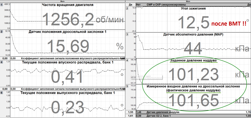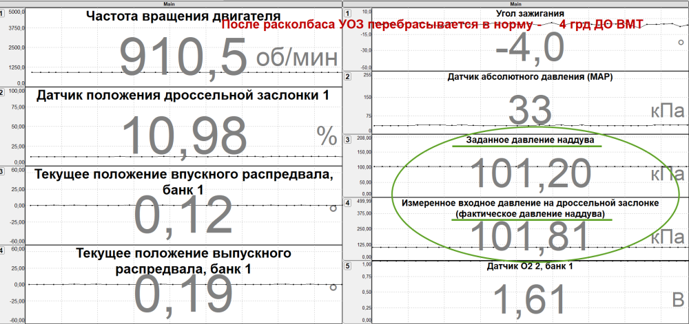 Я не знаю, что произошло с автомобилем, пока он ехал в Минск. Могу предположить, что "поплыл" шкив и чудным образом его довернуло в момент рывков. К сожалению авто в России и нет возможности снять существующие параметры. Вероятно закончилась плеяда пытливых диагностов моего поколения, для которых всегда важно дойти до истины. Те, с Минска, твердят, что проблема была порождена турбиной. Но к своим словам не могут приложить ни одного внятного убедительного доказательства.... Мы говорим- вы нам верьте. Увидели торчащую прокладку - УРА! Победа , мы нашли причину... Но у меня очевидный факт: снимки потока параметров сразу после запуска и через 20 сек при нормализации. Значения заданного и действительного давлений соответствуют и не меняются. Турбина никаким образом не оказывает влияние на момент запуска и холостой ход. В этих режимах её вообще можно снять физически - ничего не изменится. Надеюсь, что найдётся реальный специалист по данной модельной линии Ford.