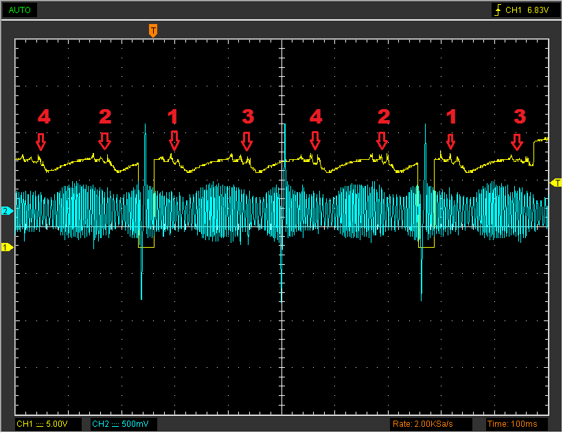 Привет. Ошибка по датчику колен-вала - может увести не в ту сторону. На осциллограмме хорошо видно наводки от срабатывания драйверов форсунок. Точнее можно сказать , если бы были подключены клещи на провод форсунки, но и так - видно. Выходит так , что ECU распознаёт синхро-сигналы , и управляет форсунками :