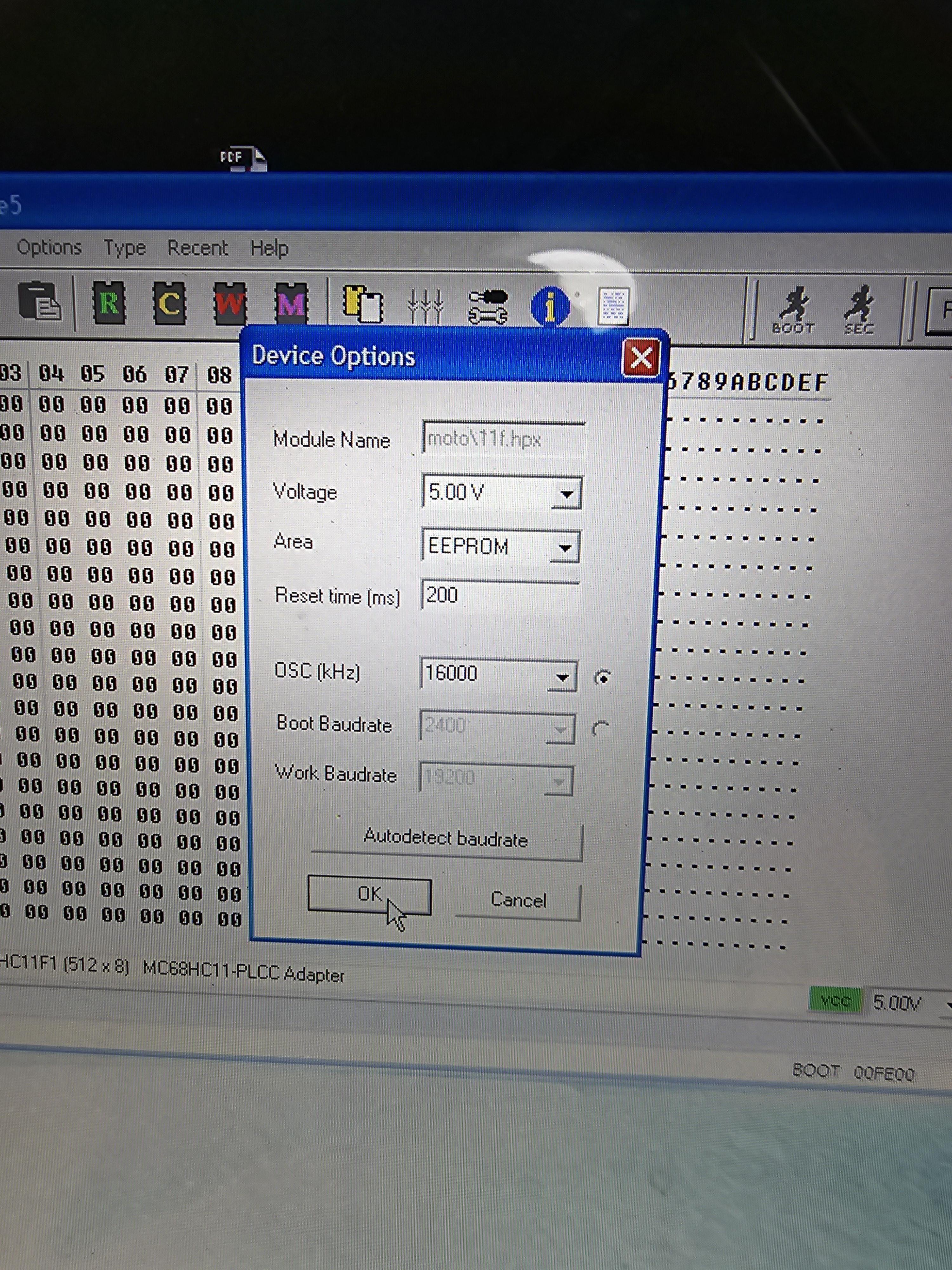 Бьё Накачка антенны есть. В иммо не показывает статусы. Заходит в иммо. Где епром прибить в immo hc05b6 или в моторнике в моторолла? Подскажите как Orange 5 внутрисхемно прочитать mc68hc11f1. Ножку reset поднял. Определяет микросхему а читать не хочет. В Boot загрузилась. Хочу отключить иммо в eprom в motorolla. Кто может с этим помочь? Думаю если на стартер подать напрямую должен завестись
