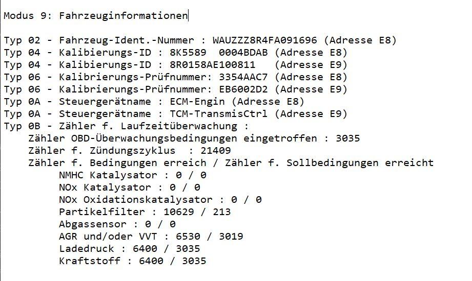 Здравствуйте, Проблема следующая: Машинка Audi SQ5 3.0TDI была у официалов для обновления прошивки связанное со скандалом с выхлопными газами. До обновления прошивка была считана (KTAG), сняты логфаилы со всех блоков, естествено и CVN. Софт до обновления стоял FL_8K5907589_0004, по моим предположениям должны были залить исходя с Flash data прошивку FL_8K5907589_0008. Но к моему удивлению залили FL_8K5907589Д_0003, после этого не совпадает CVN. Бопрос к знатокам, Насколько это правильно? CVN ведь не должен менятса с обновлениями. Дамп делали для последуюшего Тюнинга и отключения АГР, теперь не знаю что и делать, Машинка стала хуже работать появилась проблема с лямдой. -