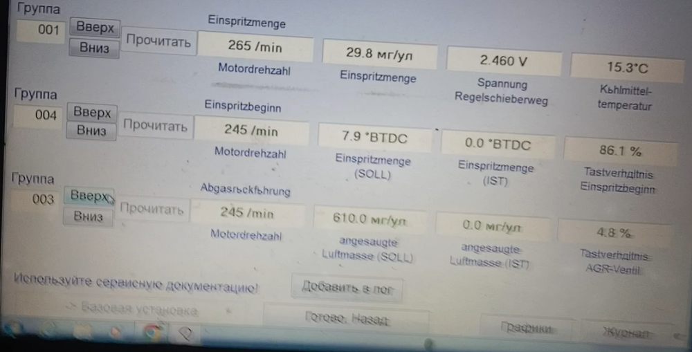 На сколько я понимаю, при тестах данных ТНВД управление не подключают, подают питание на клапан и просто добавляют обороты. Завтра уточню этот момент. На сколько я понял с прочитанного точная регулировка производиться на двс при температуре топлива 120-140 град. Что касается +\- три зуба - это делалось ради эксперимента. Изначальная установка была согласно меток на маховике и шестерни тнвд. Следующим этапом была проверка ВМТ по поршню, при проверке форсунок и компрессии. Подскажите при прокрутке в 4-той группе программы VCDS фактические показатели впрыска должны изменяться?