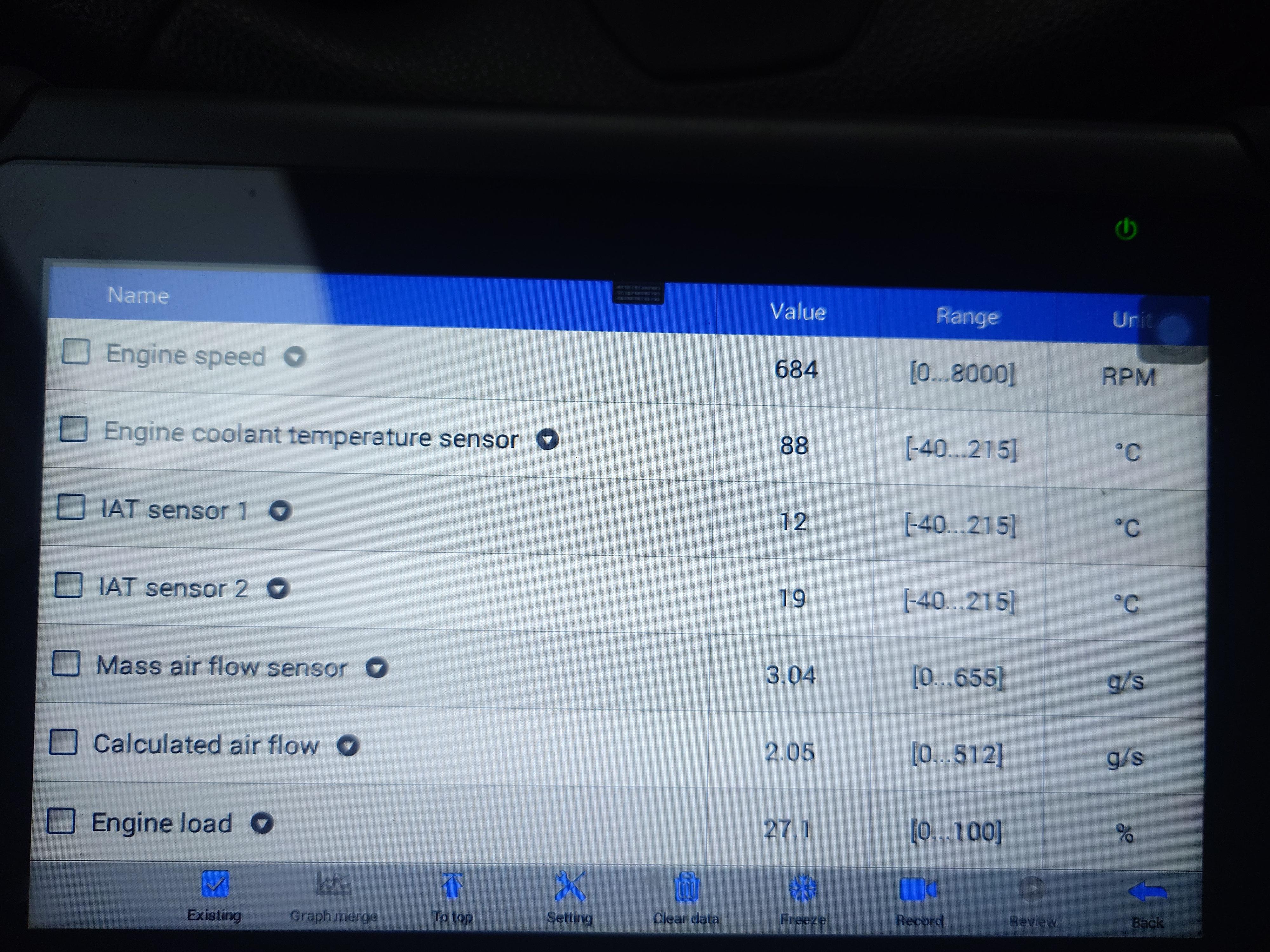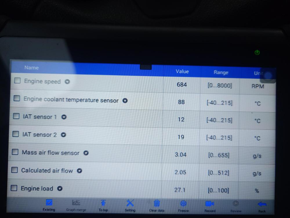 Расходомер всё так же показывает больший расход , чем нужно. Зато теперь, если немного вытащить щуп, то идёт подсос внешнего воздуха в картер и на хх коррекция приходит в норму(+-5) и показания расходомера+- соответствуют желаемым.