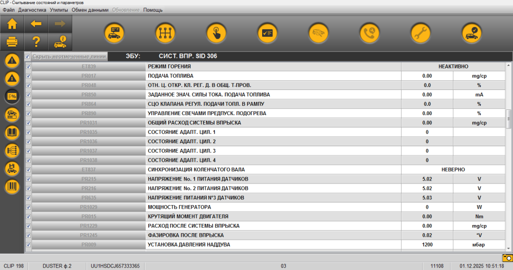 Подниму старую тему. Renault Duster 1.5 dCi SID306 Continental. Суть проблемы: машина не заводится, не хватает давления в рампе, на старте менее 100 Bar. До меня люди меняли ТНВД, меняли на нем регулятор большой, меняли тонкий длинный дозатор, снимали бак, чистили сетку- никаких изменений. Я проверил проводку, всё ок, по ошибкам ничего нет, кроме ошибки по давлению топлива, это логично, его и нет. ЭБУ почему-то не управляет клапаном дозатором. Если это сделать вместо ЭБУ, т.е. задать скважность с помощью ШИМ регулятора, то давление появляется и машина прекрасно работает. Я пытался и Launch и CLIP возобновить подачу топлива, но ни тот ни другой не делают этого, пишут: условия не соблюдены. Какие условия- не понятно. Кто сталкивался, какие пути решения данной проблемы? https://youtube.com/shorts/O1g4NwsqlyM?si=U67mcdxz3dAnEF-o